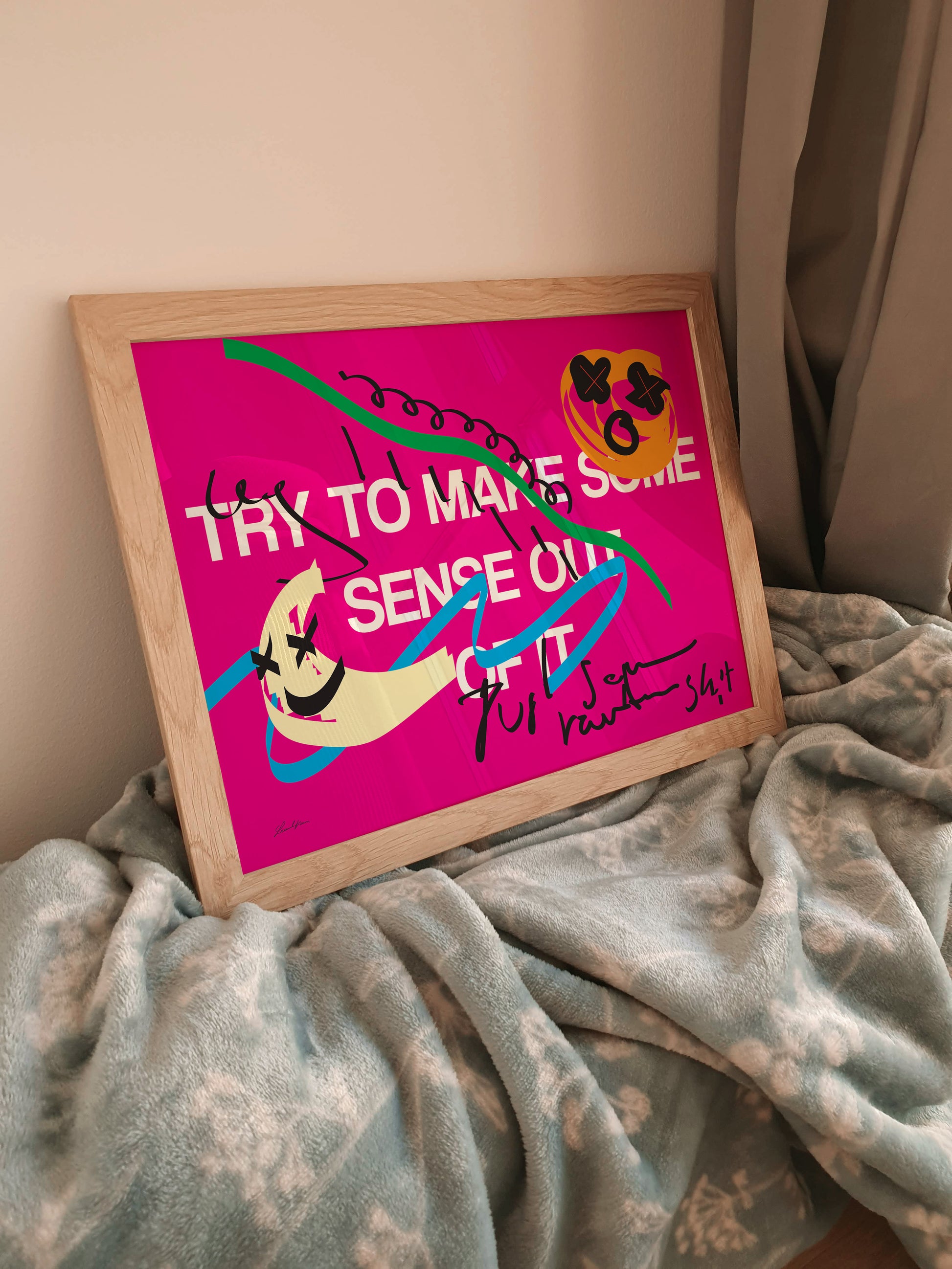 Scopri un nuovo modo di vedere il mondo con il nostro poster "Find the sense". Con il suo flusso di coscienza, ti guiderà in un'avventura unica attraverso i tuoi pensieri e le tue emozioni. Esplora il tuo sé interiore e lasciati ispirare dalla bellezza del processo di pensiero.