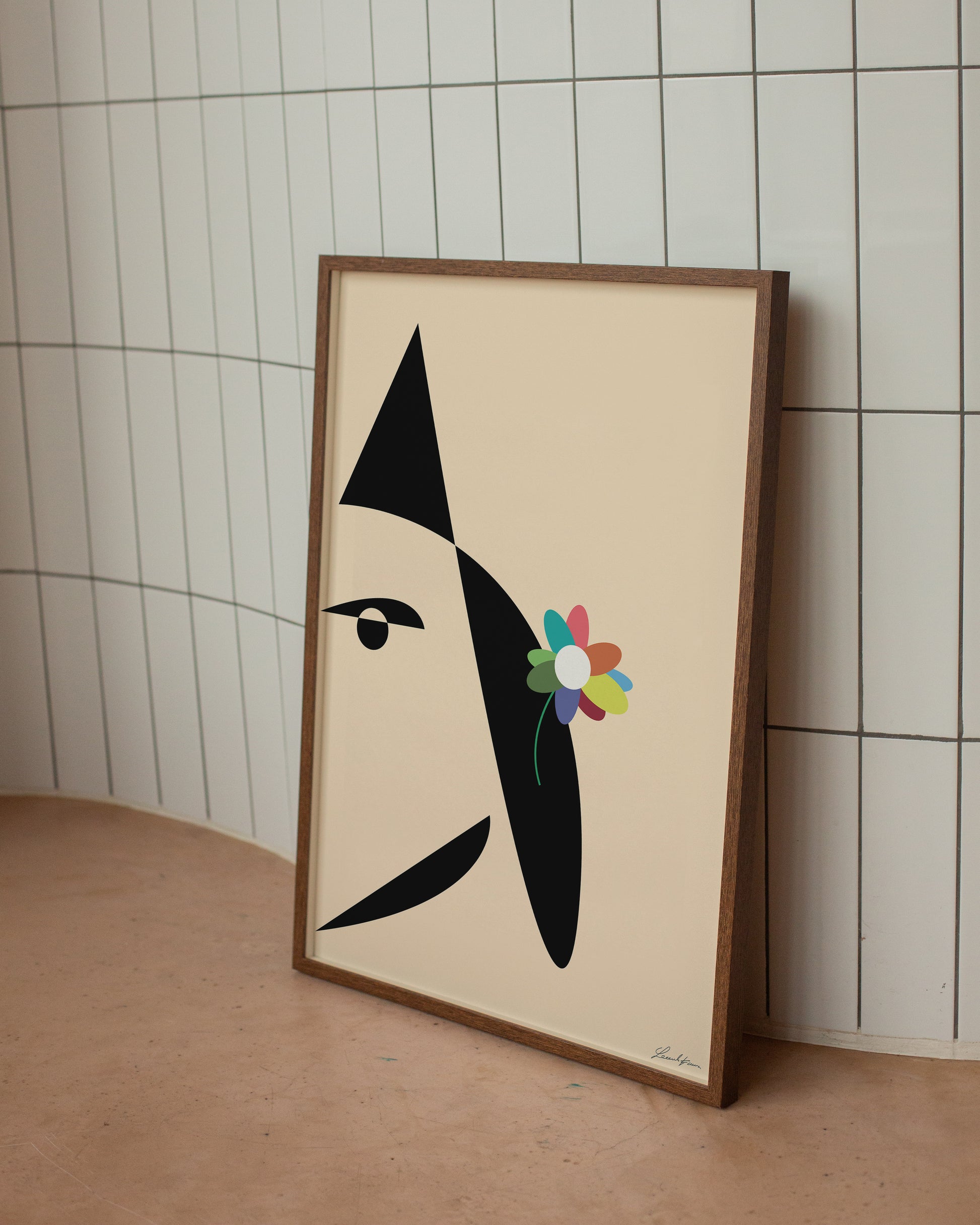 Questo bellissimo ritratto è caratterizzato da un viso orientale con un fiore tra i capelli e uno sguardo tagliente. Aggiungi un tocco di mistero e bellezza alla tua casa con questa meravigliosa opera d'arte.